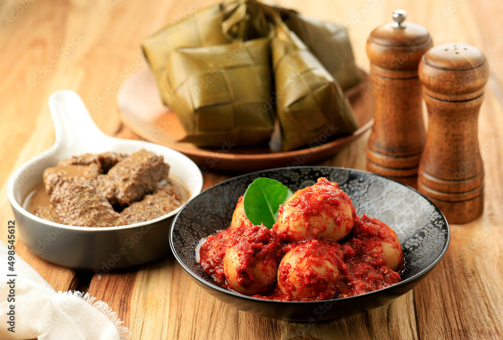 Telur Balado and Rendang served to Accompany Ketupat