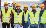 Multiracial people working together at industrial port outdoor - Focus on african senior woman face