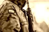 Polski żołnierz trzymający broń