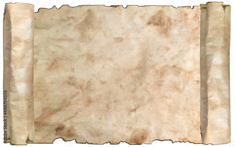 Old paper scroll or parchments ancient paper flat, old weathered burnt textured paper. Paper for calligraphy memoir records and book making.