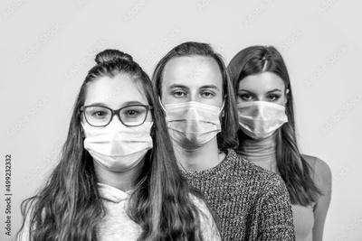 Group of people wearing protective medical mask for protection from virus disease. Group of people with protective masks. Crowd of people wearing medical masks. Coronavirus epidemic concept