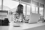 I need to go over all the business accounts today. Shot of an attractive young businesswoman sitting alone in her office and using her laptop while reading paperwork.