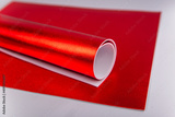 Rolled up red sheet of cardboard. Sheets of shiny isolon. Izolon.