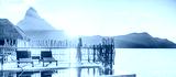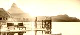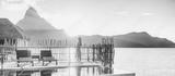 Luxury travel vacation resort. High end hotel rich people lifestyle woman tourist relaxing watching sunset on private balcony terrace of overwater bungalow suite in Bora Bora, Tahiti, French Polynesia