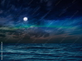 moon on starry sky bright dark shiny clear nebula star flares fall background copy space template