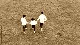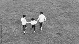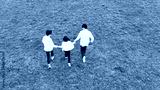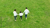 草原を走る家族 ドローン空撮 親子 ファミリー 子育て 育児