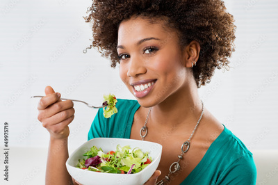 African American Woman Eating Salad