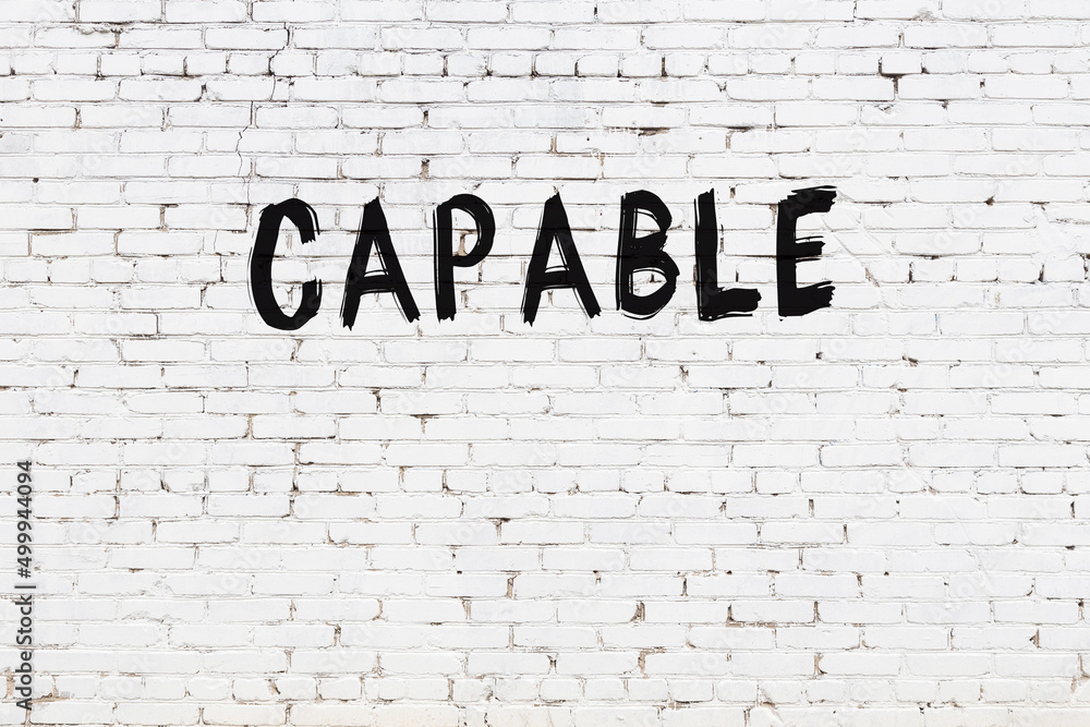 White wall with black paint inscription capable on it