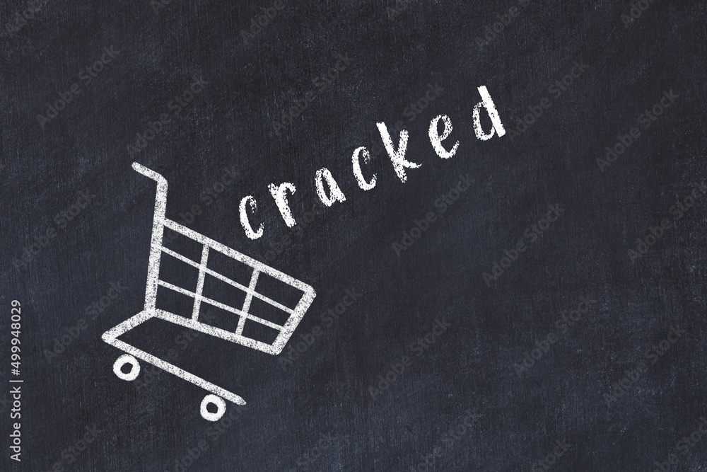 Chalk drawing of shopping cart and word cracked on black chalboard. Concept of globalization and mass consuming
