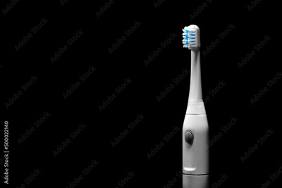 Electric ultrasonic toothbrush on black background.