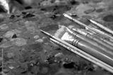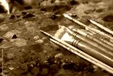 Tubes of oil paint and artist paint brushes