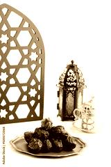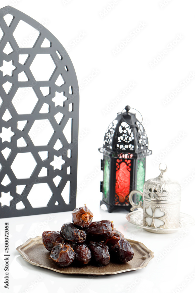 Ramadan Kareem with Premium Dates and Arabic Lantern, Copy Space for Text.