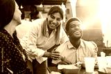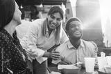 Multiracial people eating at food truck restaurant outdoor - Focus on senior woman eyes