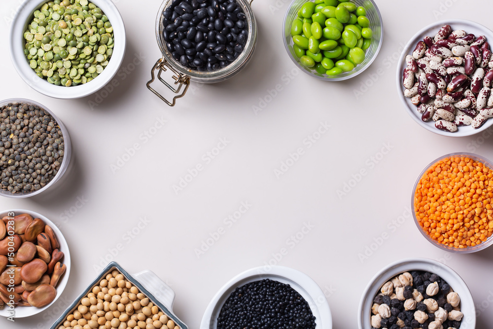 Variety of legumes, lentils, beans, plant based vegan protein source