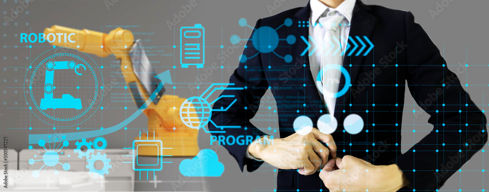 Smart Robotics Business for Manufacturing Plants,Robotic arms help in heavy industrial production.