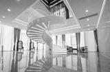 Modern Chinese style office, Wide and bright lobby and stairs