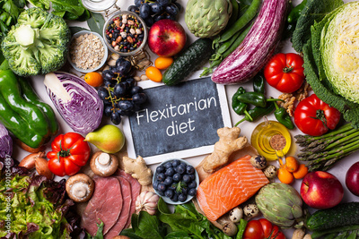 Assortment of healthy food for clean eating flexitarian mediterranean diet
