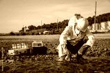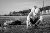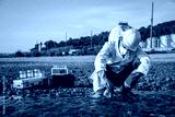 Scientist wearing protective uniform and glove under working water analysis and water quality by get fishes dead to check effected case in laboratory is environment pollution problem concept.