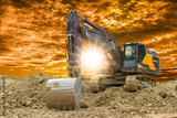 excavator is digging on construction site