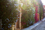 calle empedrada con flores en la fachada de colores en pintoresca calle de mexico en san miguel de allende guanajuato