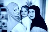 Muslim grandmother, daughter and grandchild together at home, happy domestic life moments. Family having fun, concepts about elderly, mult-generation islamic family and relationship