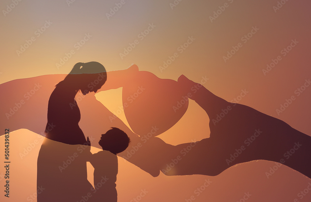 caring loving mother pregnant and her child