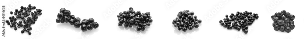 Set of delicious black caviar on white background