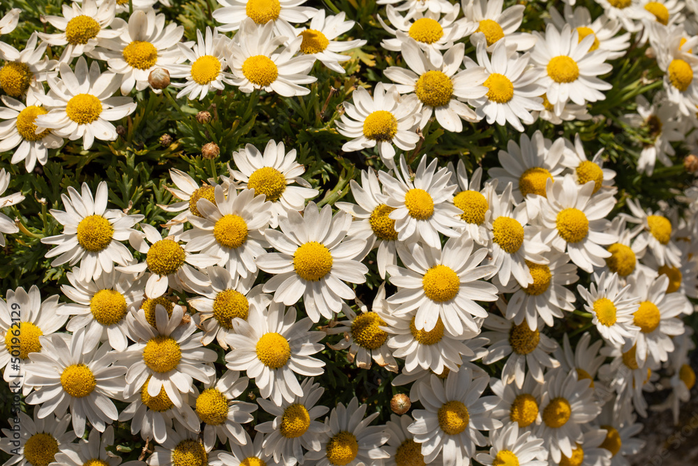 fiori di camomilla appena fioriti nel prato del giardino a primavera