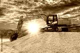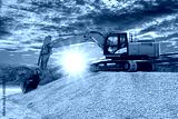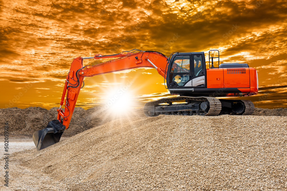 excavator is digging on construction site