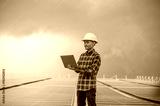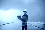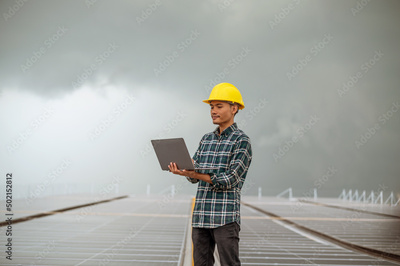 Chinses engineer checking solar power on factory roof top working control for industrial system
