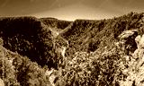 panoramic of green valley with rives between the mountains in the morning in guachochi chihuahua