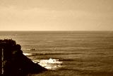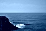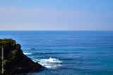 cliff in front of a sea with waves in beautiful day with blue sky in puerto escondido oaxaca
