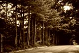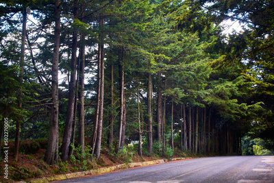 carretera de asfalto en el bosque con pinos verdes a un lado en el oro de hidalgo estado de mexico
