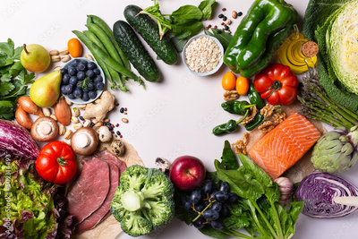 Assortment of healthy food for clean eating flexitarian mediterranean diet