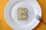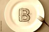 Vitamin B icon from capsules on a plate. Vitamin B deficiency in humans