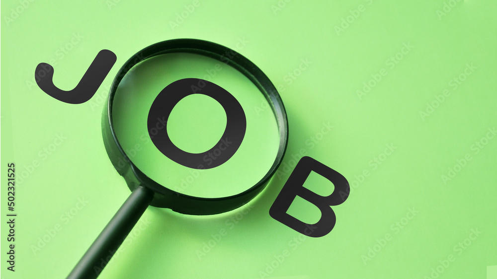 Magnifying glass and inscription: Job. Job Search symbol