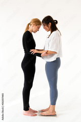 Alternative medicine and mindfulness practice - standing on sadhu board nails barefoot