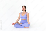 young woman practicing yoga white background, healthy lifestyle and wellbeing concept