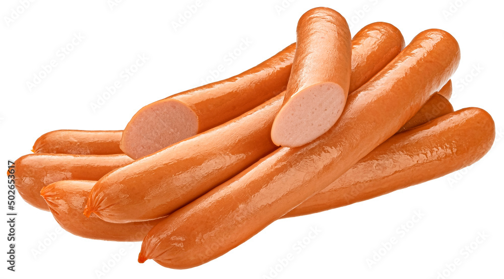 Hot dog sausage isolated on white background, full depth of field