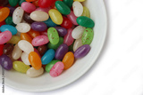 Colorful candies in a white ceramic bowl isolated on white backgrounds