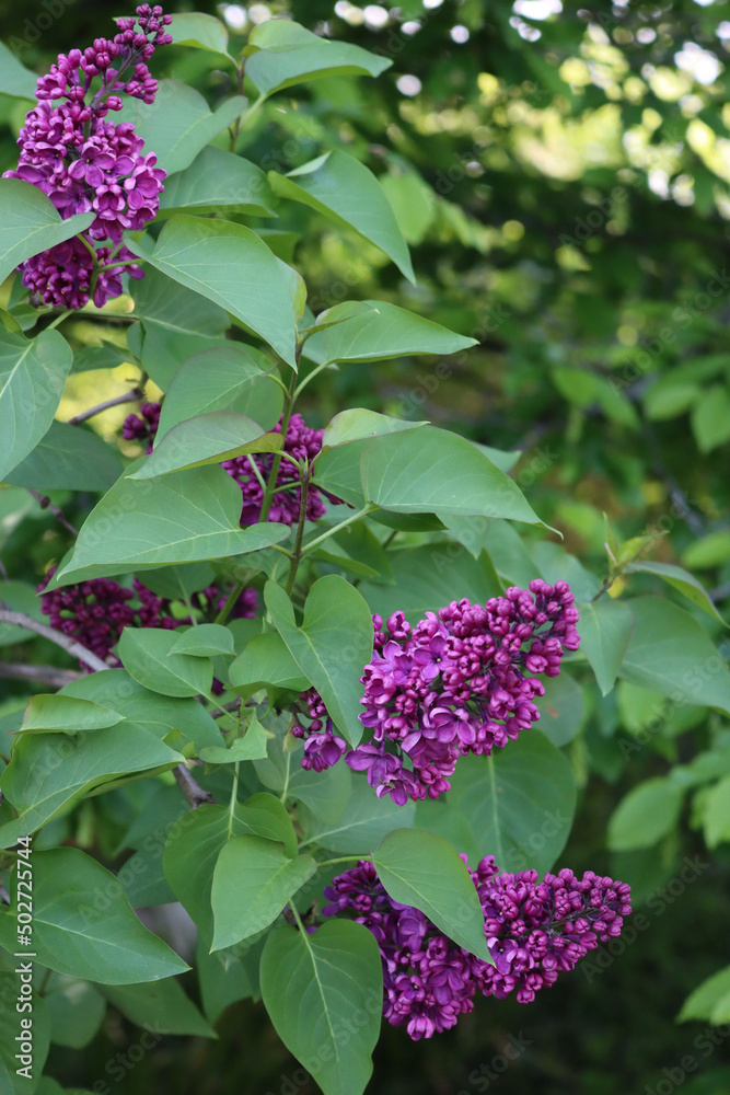 Lilac blossoms and flowers on bush on springtime. Syringa vulgaris in bloom
