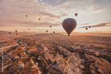 travel and inspiration, hot air ballons in Turkey flying at sunrise sky