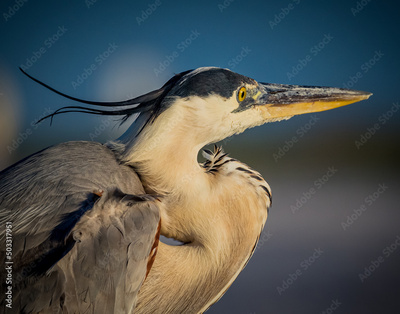 Head feathers showing breeding plumage on a great blue heron in spring