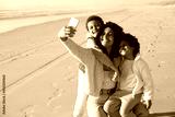 Mother and children taking selfie on beach. African American family spending time together on open air, taking pictures with mobile phone. Leisure, social media, parenting concept