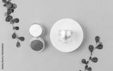 Top view of cosmetic bottle cream mockup, Blank label package on orange background..