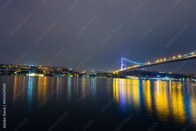 Istanbul. Image of Ortakoy Mosque with Bosphorus Bridge in Istanbul during beautiful sunrise.