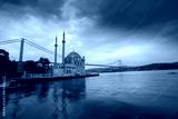 Istanbul. Image of Ortakoy Mosque with Bosphorus Bridge in Istanbul during beautiful sunrise.