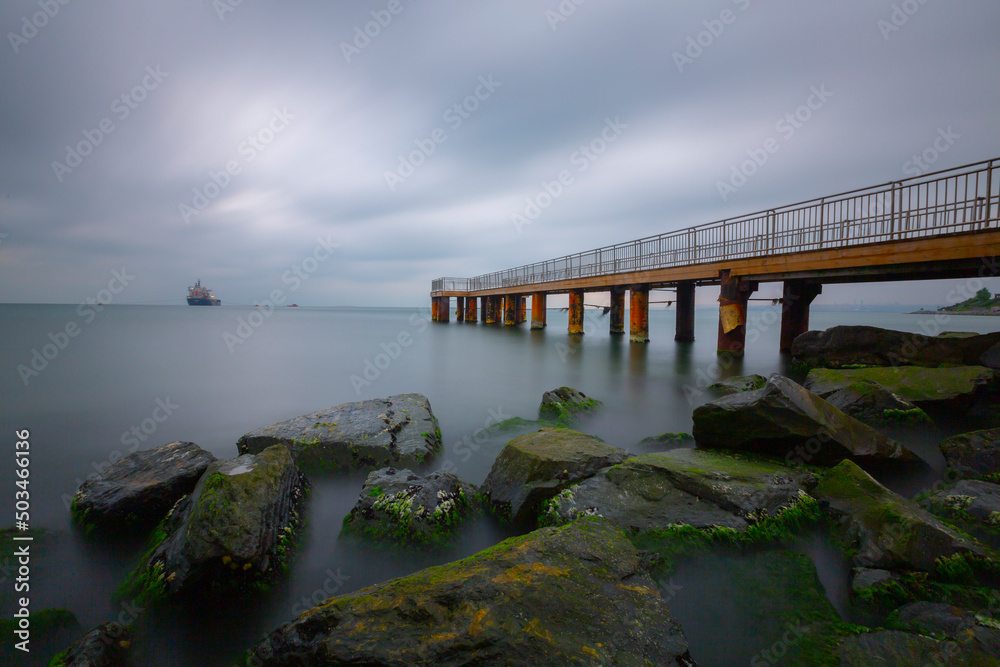 Scaffold photographed with long exposure technique