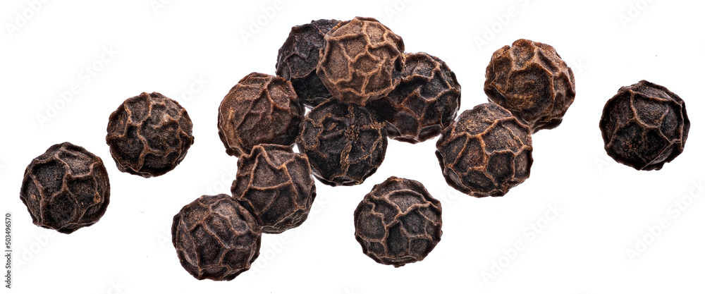 Peppercorn, black pepper isolated on white, full depth of field