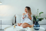 Beautiful girl eating oatmeal porridge